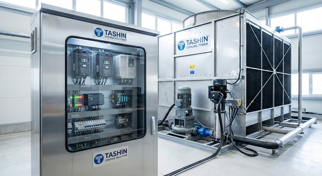 Tủ điện điều khiển tháp giải nhiệt là thiết bị quan trọng nhất trong hệ thống làm mát công nghiệp, đóng vai trò là "bộ não" điều hành toàn bộ hoạt động của quạt tháp và máy bơm. Một hệ thống tháp giải nhiệt Tashin hay tháp vuông dù có hiện đại đến đâu cũng không thể vận hành ổn định và tiết kiệm điện năng nếu thiếu đi hệ thống tủ điện điều khiển thông minh.